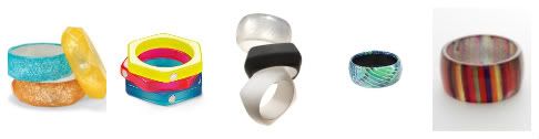 For a more bold/chic look Marc Jacobs is in place with the pop fluorescence bangles. These bangles are easy to accessorize, from a bare arm to a solid long sleeved top. Choose from yellow, pink or blue. Available online at Bloomingdales.com $28 ea.